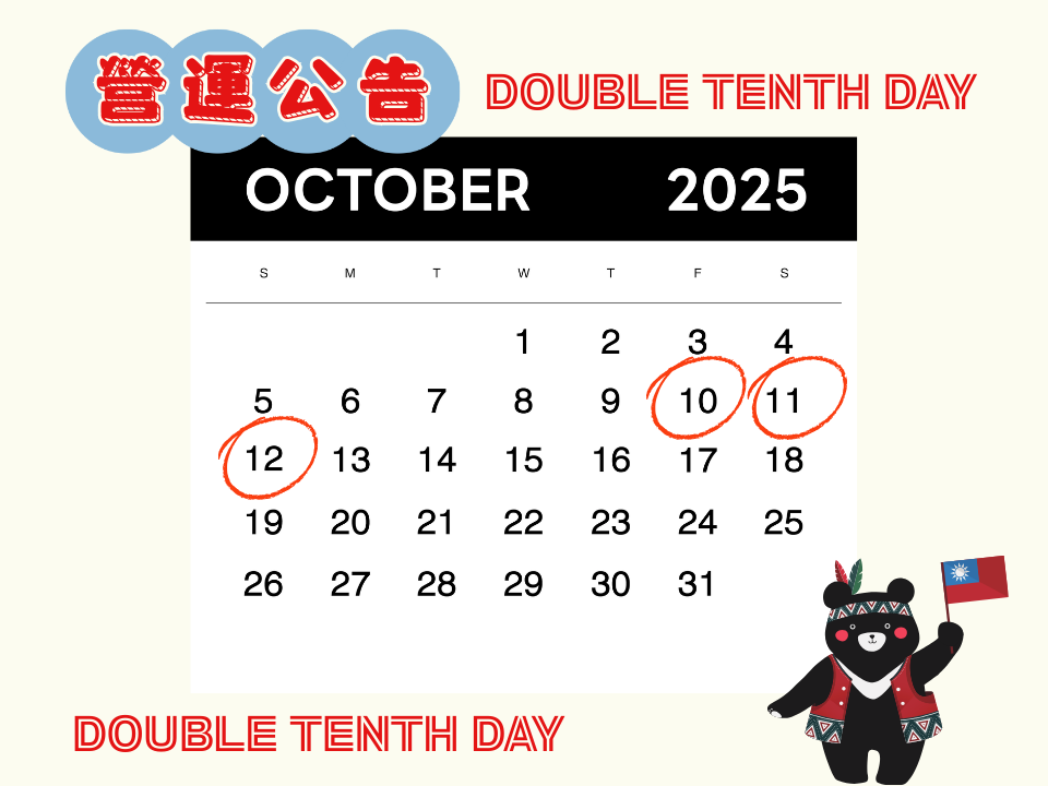 2025 雙十節服務公告